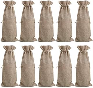 10 Pièces Sacs Cadeaux Vin, Sacs de vin de Jute 35 x 15 cm de Vin Cadeau Sacs couvertures vin de stockage organisation Sacs avec cordon de serrage vin en toile de jute Sacs Cadeau de Noel (Marron)