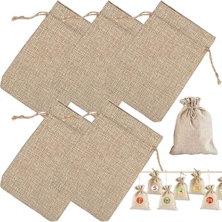 Gxhong Calendrier de l'Avent de Noël, Sac Cadeau en Toile de Jute de Noël, Sacs Cadeau avec Etiquettes Numéro, Sachets en Jute, pour Noël DIY Sacs Cadeaux de Noël Décoration de Noël