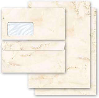 Motif-ensembles de papeterie Marbre & Structure, MARBRE BEIGE 20 feuilles de papier à lettres et 20 enveloppes DIN LONG avec fenêtre | Paper-Media