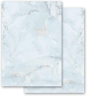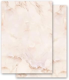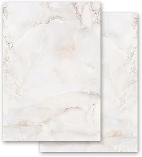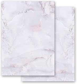 Presentou Lot de 50 feuilles de papier à lettre imprimées des deux côtés - 120 g - Papier à motif, certificat, menu, lettre d'amour (marbré, 50 feuilles)