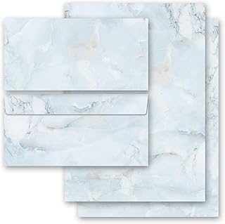 Motif-ensembles de papeterie Marbre & Structure, MARBRE BLEU CLAIR 10 feuilles de papier à lettres et 10 enveloppes DIN LONG sans fenêtre | Paper-Media