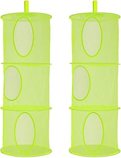 sutinban Lot de 2 paniers de rangement suspendus en maille filet - Peu encombrant - Pliable - Pour armoire, chambre d'enfant, salle de bain - Vert - 3 animaux