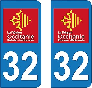 supstick 2 Stickers Autocollant Plaque IMMATRICULATION DEPT 32 Région Occitanie Format rectangulaire