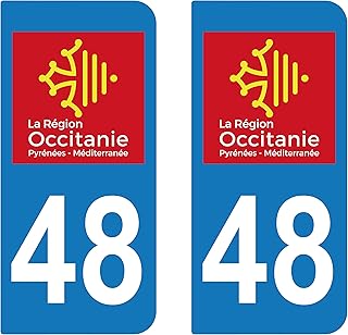 supstick 2 STICKERS AUTOCOLLANT PLAQUE IMMATRICULATION DEPT 48 région Occitanie