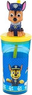 POS 29442 – Gobelet avec paille et figurine en 3D au design populaire Paw Patrol – Capacité : env. 360 ml – En plastique sans BPA ni phtalates – Pour garçons et filles