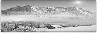 Paul Sinus Art Photo sur toile panoramique noir/blanc 120 x 40 cm Paysage d'hiver montagnes forêt maison neige