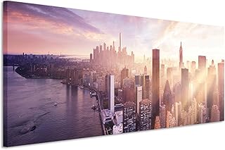Paul Sinus Art Impression sur toile panoramique New York Manhattan Gratte-ciels sur châssis 150 x 50 cm