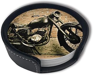 inherited 6 pièces Ronde Dessous De Verres Cuir, sous-Verre en Cuir PU pour Les fêtes de Coffee Bar Pub Tasse Tapis Dessous-de-Verre Dessous de Verre avec Support Black-Round