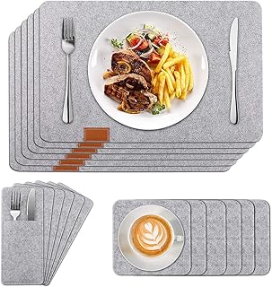 Set de Table en Feutre,Tapis en Feutre, sous-Verre et Sac à Couverts, Set de Table, Dessous de Verre Sacs à Couverts Table antidérapante résistant à la Chaleur, Adapté à la Table à Manger (gris clair)