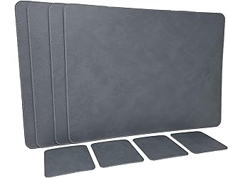 Myir JUN Set de Table en Cuir et Dessous de Verre, PU Set de Table Antidérapant Double Face Set de Table Lavable ImperméAbles Set Table et Dessous de Verre Plastique (Bleu Gris, Lot de 4)