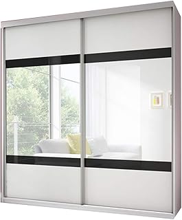 E-MEUBLES Armoire de Chambre avec 2 Portes coulissantes | Penderie (Tringle) avec étagères (LxHxP): 204x218x58 Nico avec Miroir (Blanc+ Blanc+ Miroir)