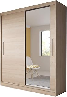 E-MEUBLES Armoire de Chambre avec 2 Portes coulissantes | Penderie (Tringle) avec étagères (LxHxP): 183x218x61 Ben 36 (Sonoma/chêne Sonoma+Miroir)