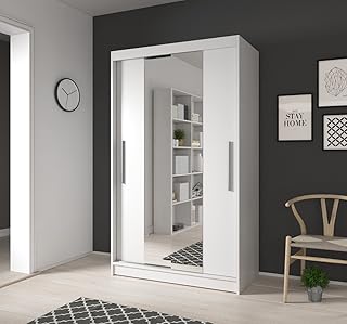 MEUBLO Armoire, Penderie avec étagères et 2 Portes coulissantes (L x H x P): 120x200x61 Noah 01 (Blanc)