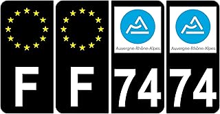 Supstick 4 Stickers Autocollants Plaques Immatriculation Auto Dept 74 Auvergne Rhône Alpes Noir Angles Arrondis