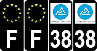Supstick 4 Stickers Autocollants Plaques Immatriculation Auto Dept 38 Auvergne Rhône Alpes Noir Angles Arrondis