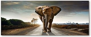 Tulup Impression sur verre 125x50 cm Image Tableau Photo décorative panoramique pour la cuisine et le salon - Animaux - Eléphant Qui Se Promène - Brun