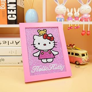 Kit complet de peinture diamant 5D à faire soi-même avec cadre, strass en cristal pour enfants (chaton 1, 15,2 x 19,8 cm)
