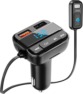 Bovon Transmetteur FM Bluetooth Adaptateur Radio Sans Fil Kit Main Libre Voiture Chargeur avec Smart Dual Port USB QC3.0 + 2.4A, Écran LCD de 1.80 Pouces, 3.5mm Port Audio, Fente pour Carte TF