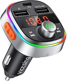 VicTsing Allume Cigare Bluetooth Transmetteur FM Voiture, Musique Bass & 3 USB Ports 18W Adaptateur Radio PD3.0 USB-C, 7 Couleurs Lumière, Kit Main Libre Voiture Bluetooth, Soutien Carte SD/Clé USB