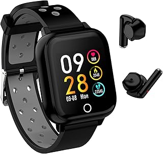 Sofobod M6 Smart Bracelet Watch with Dual BT 5.0 TWS Earbuds Earphone, Fitness Tracker with Headphone 2 in 1 Smart Wristband with MP3, HD Touch Screen, Blood Pressure, Heart Rate Monitor (Black)