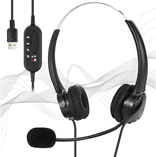 Casque USB avec microphone pour PC, suppression du bruit et contrôle audio Voix cristalline Super léger et confortable pour les entreprises UC Skype Softphone (Binaural)